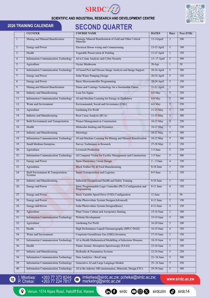 Established in February 1993 by the Government of Zimbabwe through the Research Act [Chapter 10:22] to carry out strategic Research & Development for the benefit of the manufacturing, service, agricultural as well as to commercialise the Research & Development outputs.